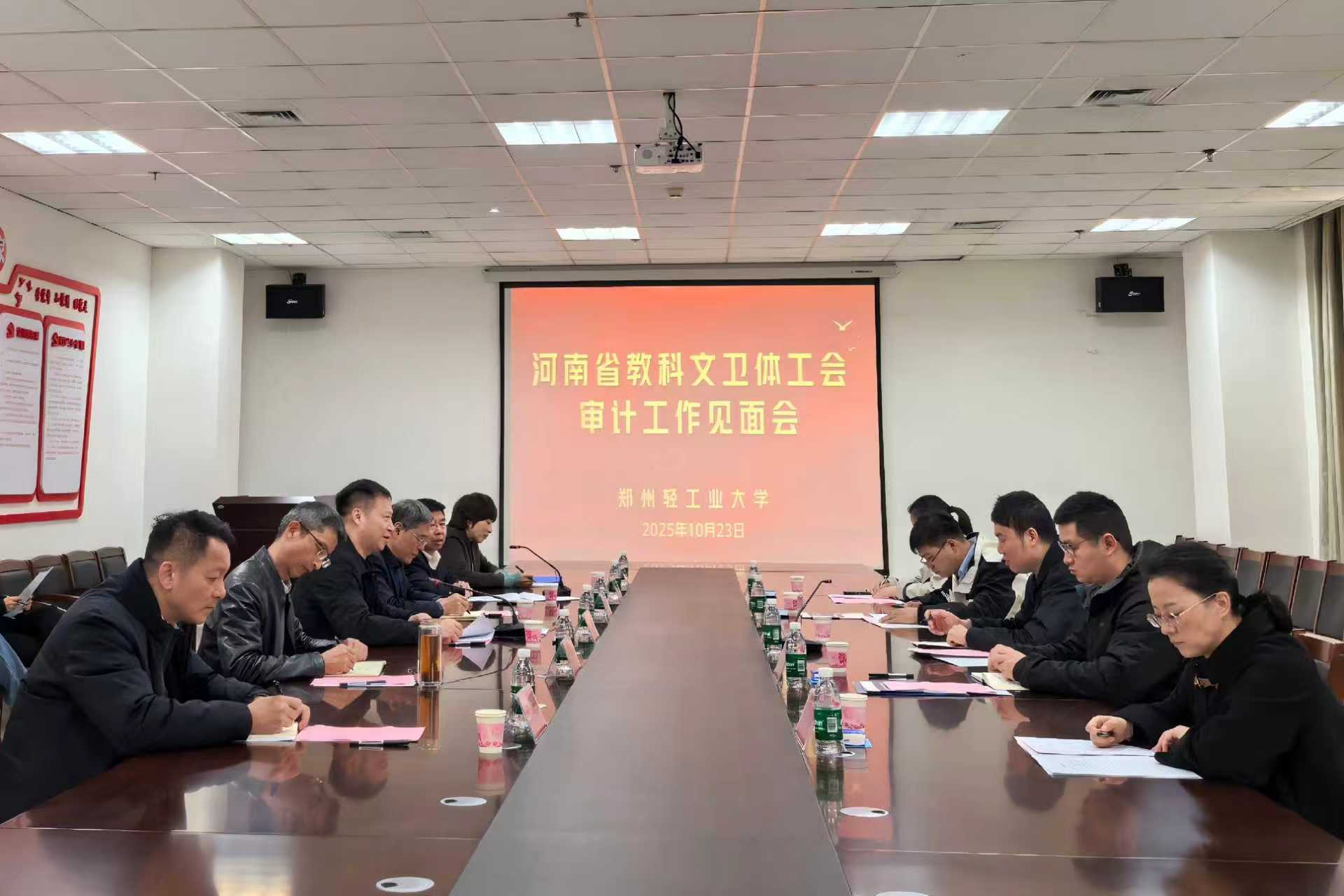 2025年10月23日,河南省教科文卫体工会副主席王晨一行5人来校开展了工会财务审计工作。校党委副书记杨新宇出席见面会,财务处、审计处负责人和工会全体人员参加见面会。