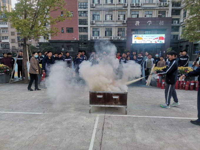 理论学习结束后,应急灭火演练正式拉开帷幕。在消防员的指导下,部分师生代表亲自体验了灭火器灭火操作。面对熊熊燃烧的火盆,大家严格按照所学技巧,果断按下灭火器压把,对准火焰根部喷射,成功将火扑灭。亲身实践让师生们更加直观地掌握了灭火技能,切实提升了应急处置能力。