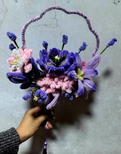 “先把黄色扭扭棒绕成花蕊,再用粉色的折出花瓣形状,粘的时候要注意角度……”刘成瑛老师一边细致演示,一边耐心解答大家的疑问。老师们认真聆听、仔细模仿,捻、折、绕、粘等动作虽略显生疏,却充满专注与热情。原本普普通通的毛绒扭扭棒,在大家的指尖逐渐蜕变,绽放成一朵朵形态逼真的玫瑰、向日葵、康乃馨。创作过程中,老师们不时交流构思灵感,主动分享技巧心得,遇到难题时互相支招,教室里的欢声笑语此起彼伏,温暖的情谊在指尖流转、在交流中升温。当一个个独具匠心的扭扭棒花艺作品完成时,老师们的脸上都洋溢着满满的成就感与幸福感。