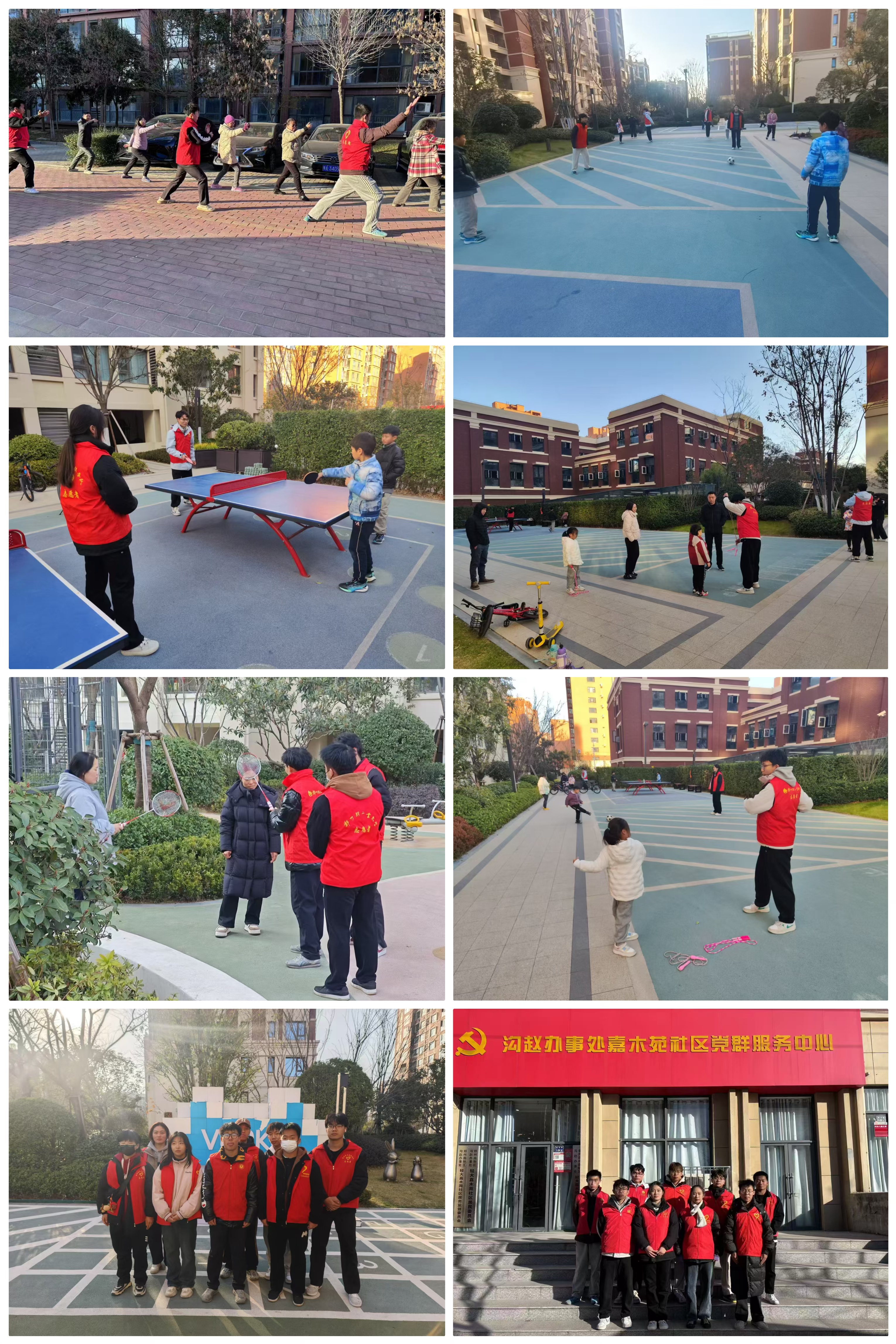 活动中,志愿者针对不同年龄段的居民分别带领他们学习了羽毛球、乒乓球、足球、跳绳、太极等运动项目技巧,并配合讲解法、示范法等多种方式由浅入深的指导居民科学健身,科普体育知识。