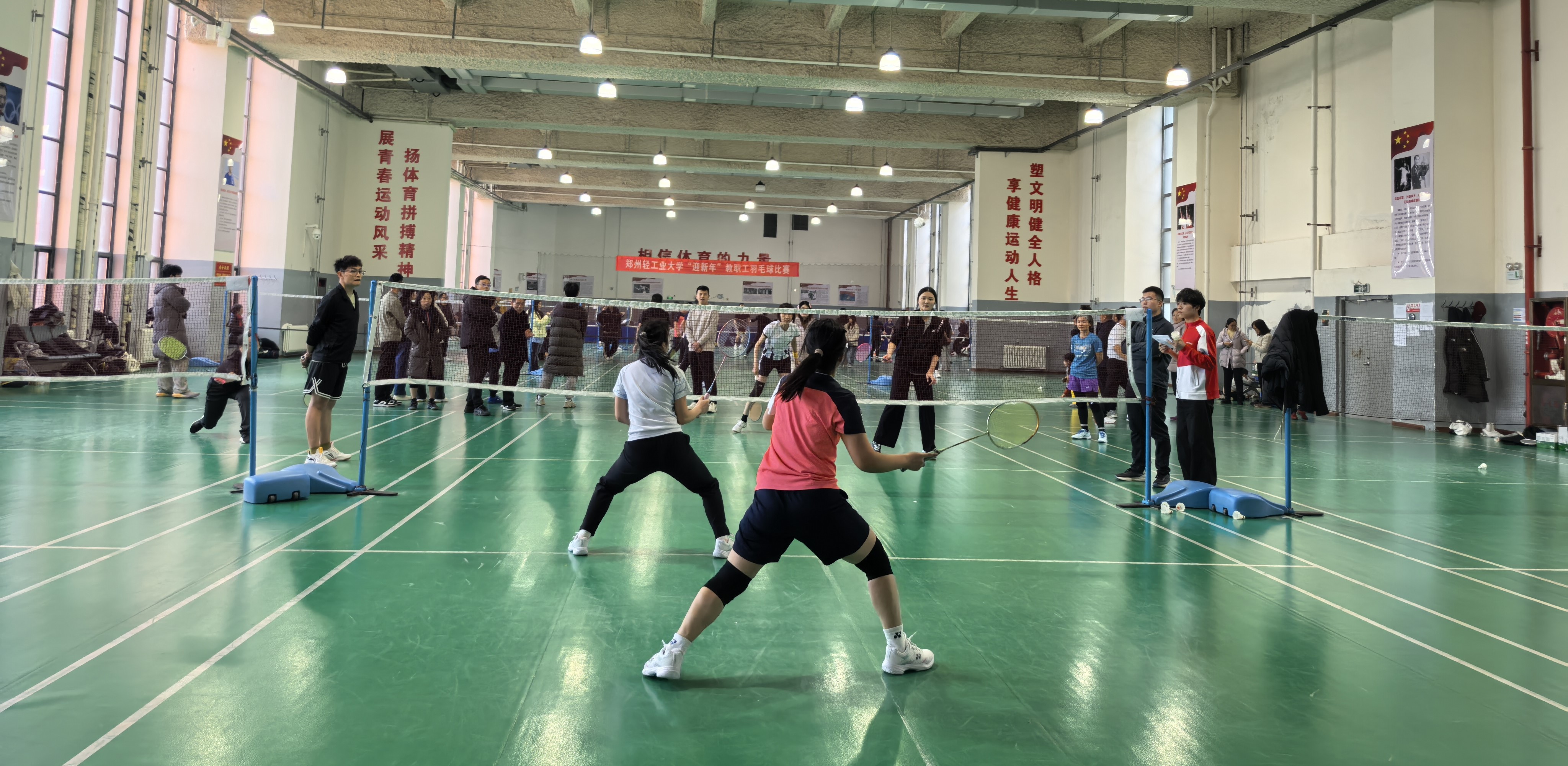 为广泛推动全民健身运动,丰富教职工业余文化生活,营造欢乐祥和、健康向上的新年氛围,学校于12月27日至28日在科学校区羽毛球馆成功举办“迎新年”教职工羽毛球比赛,吸引了来自19个基层工会的200余名教职工参赛。校党委副书记杨新宇到场观看比赛并为获奖单位颁奖。