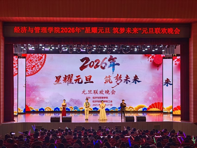 星耀元旦启新程,同心筑梦向未来。12月27日晚,经济与管理学院在东风校区大礼堂隆重举办2026年“星耀元旦 筑梦未来”元旦联欢晚会,学院领导、教职工与同学们欢聚一堂,共迎新年。现场洋溢着喜庆祥和、青春奋进的浓厚氛围。