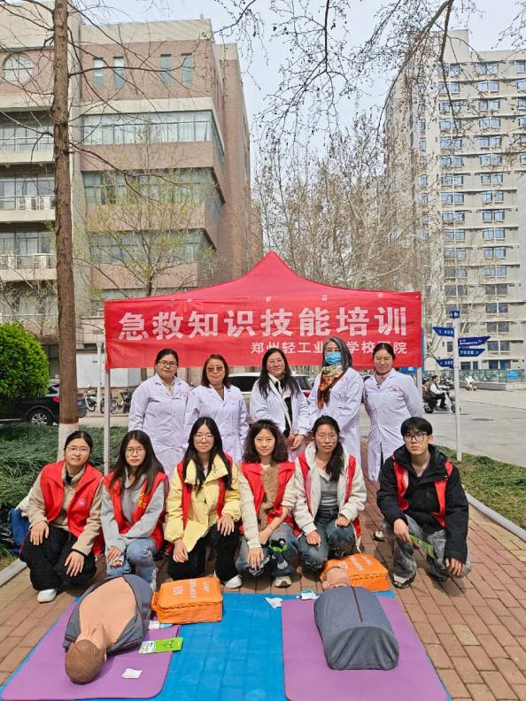 活动现场,校医院工会的医护志愿者们化身“急救讲师”,搭建起便民急救教学点位,精心摆放了心肺复苏模拟人、AED训练机及急救科普宣传资料,把专业的急救课堂搬到师生“家门口”。志愿者们紧扣“黄金4分钟”急救核心,用通俗易懂的语言讲解心搏骤停识别、紧急呼救、胸外按压、人工呼吸等急救知识,重点示范按压位置、深度、频率等关键动作,同步完整演示AED训练机开机、贴电极片、分析心律、除颤的全流程操作,细致强调设备安全使用及与心肺复苏配合的核心要点。