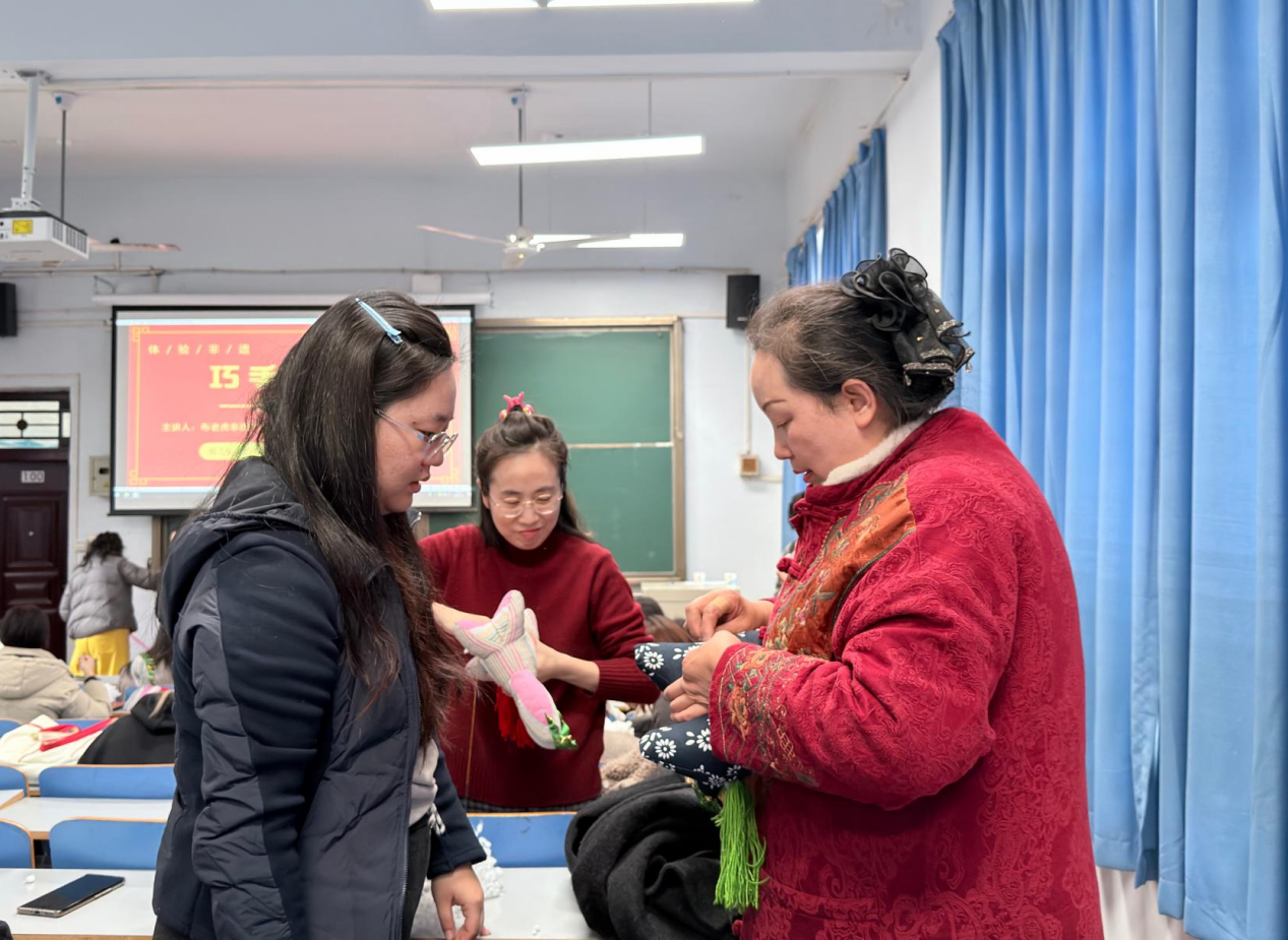 活动特别邀请到河南布老虎非物质文化遗产传承人、香包制作技艺传承人王彩红老师现场授课。活动伊始,王老师围绕中华传统文化底蕴、布艺马蕴含的吉祥寓意、制作工艺和步骤为大家详细讲解,并对布料整理、物料填充、缝合装饰等步骤进行现场示范,女教职工们认真聆听,眼神中满是对传统手工艺的好奇与喜爱,迫不及待地开启自己的创作之旅。